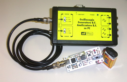 Nel numero 232 uscito a Settembre 2007 la rivista “Nuova Elettronica” ha effettuato una accurata recensione del Visual Analyser e ha deciso di realizzare la scheda di interfaccia USB LX.1690 ed il circuito di calibrazione LX.1691 che consentono di migliorarne ulteriormente le prestazioni. Nel numero successivo della rivista (233) uscito a novembre dello stesso anno ,a rivista Nuova Elettronica ha pubblicato un altro articolo interamente dedicato alla sintesi di forme d'onda ed all'analizzatore di spettro. La scheda di interfaccia è dotata di un convertitore USB a 44.100 Hz. - 16 bit che supporta il protocollo USB 1.1, e una volta collegata alla presa USB del vostro personal computer si sostituisce completamente alla scheda audio. E’ dotata di 2 canali in ingresso (Ch A e Ch B) entrambi protetti da un attenuatore in ingresso, che consente di effettuare misure di tensione AC in 3 diverse portate: pos. X1 fino a 1,7 voly pos. X10 fino a 17 volt pos. X100 fino a 170 volt L’impedenza tipica in ingresso risulta superiore a 100 KOhm. La scheda prevede 4 canali in uscita . Sulla coppia di uscite 1 e 2 , relative agli ingressi Ch A e Ch B, è possibile prelevare la forma d’onda generata all’interno del VA, amplificata fino ad una tensione massima di 14 volt picco/picco. Sulla coppia di uscite 3 e 4, anch’esse relative agli ingressi Ch A e Ch B, è disponibile una tensione ad onda quadra di 5 volt di ampiezza.