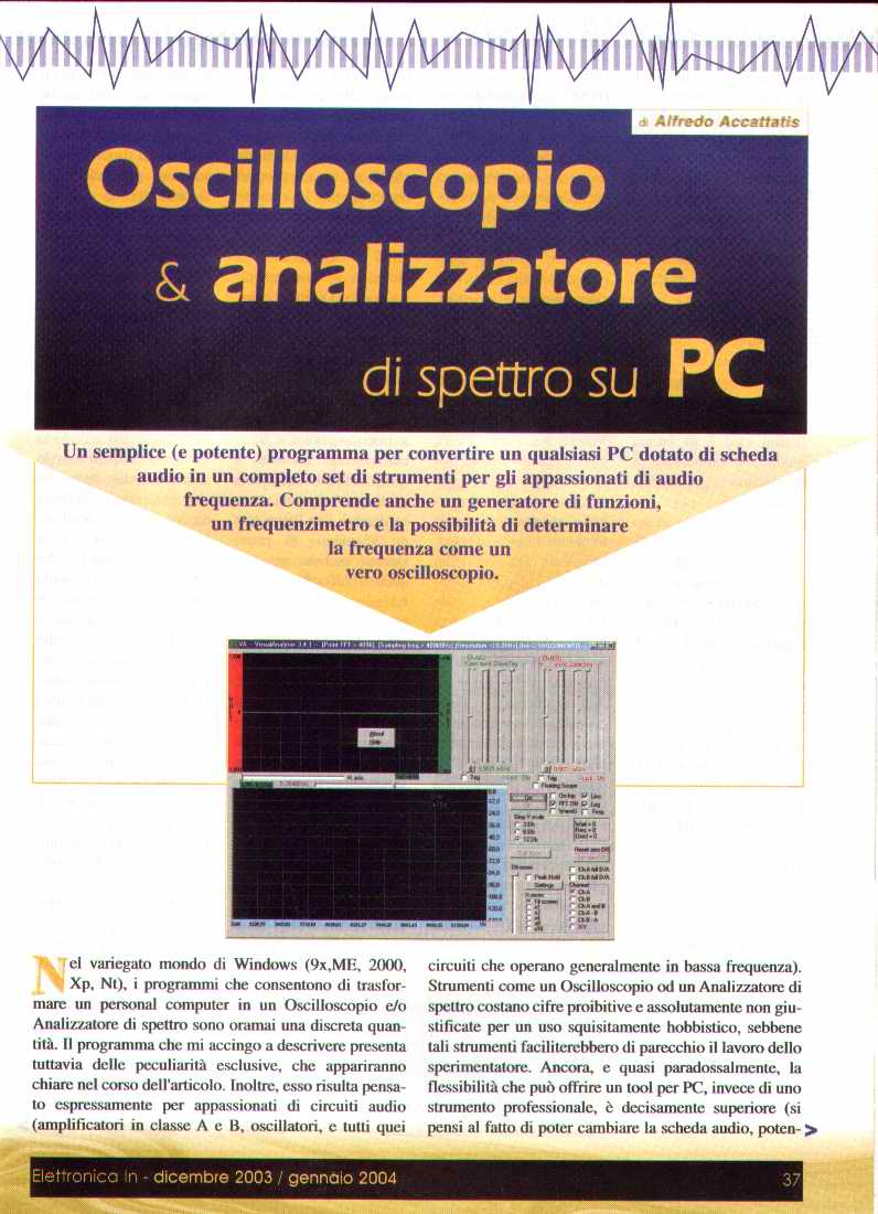 The title was "Oscilloscopio ed analizzatore di spettro su PC" that means "A scope and a spectrum analyser on PC" . This is the first page of the article: