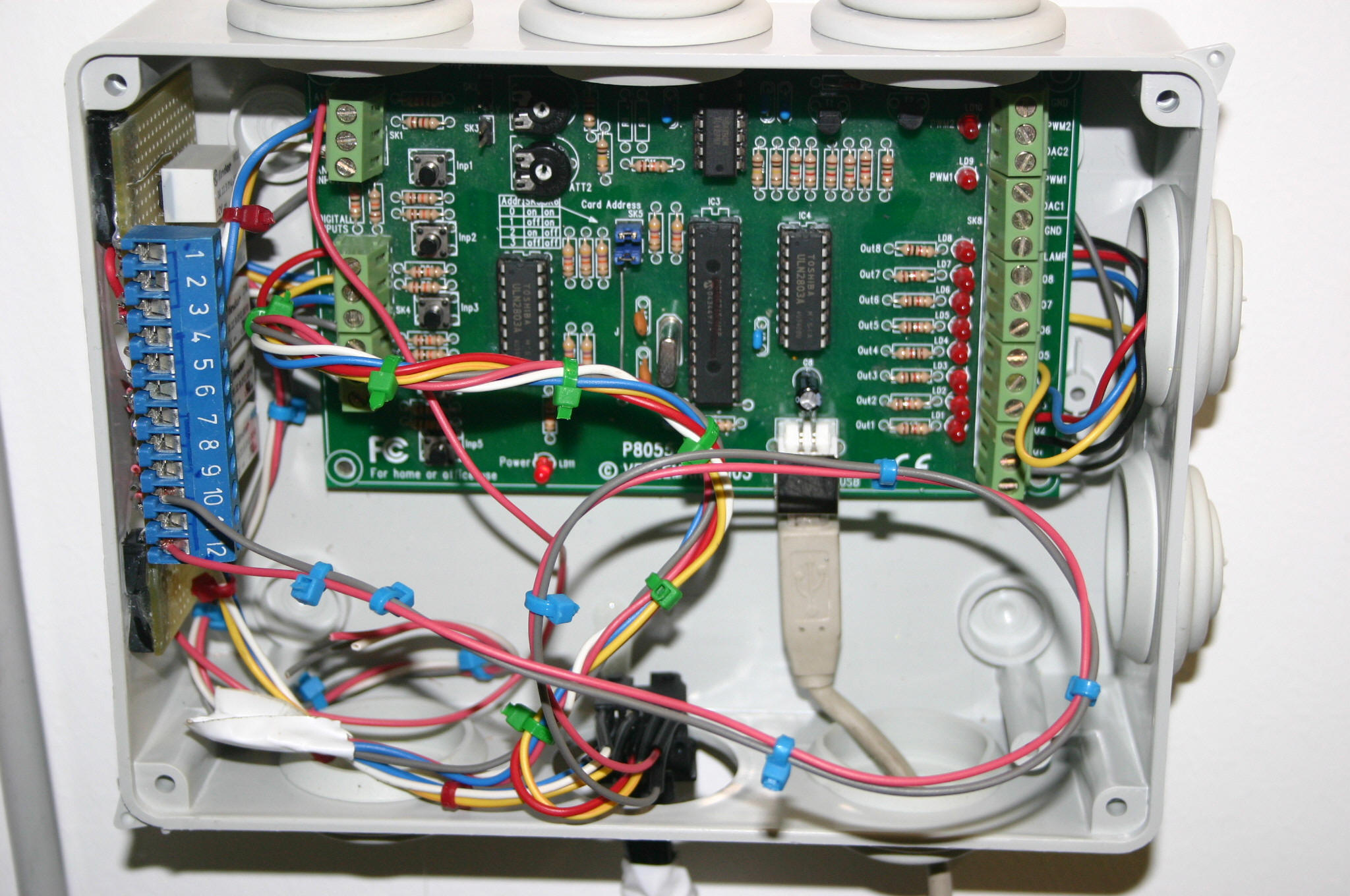 I put the demo board in a simple case, like that (adding also 8 relays to drive external loads):